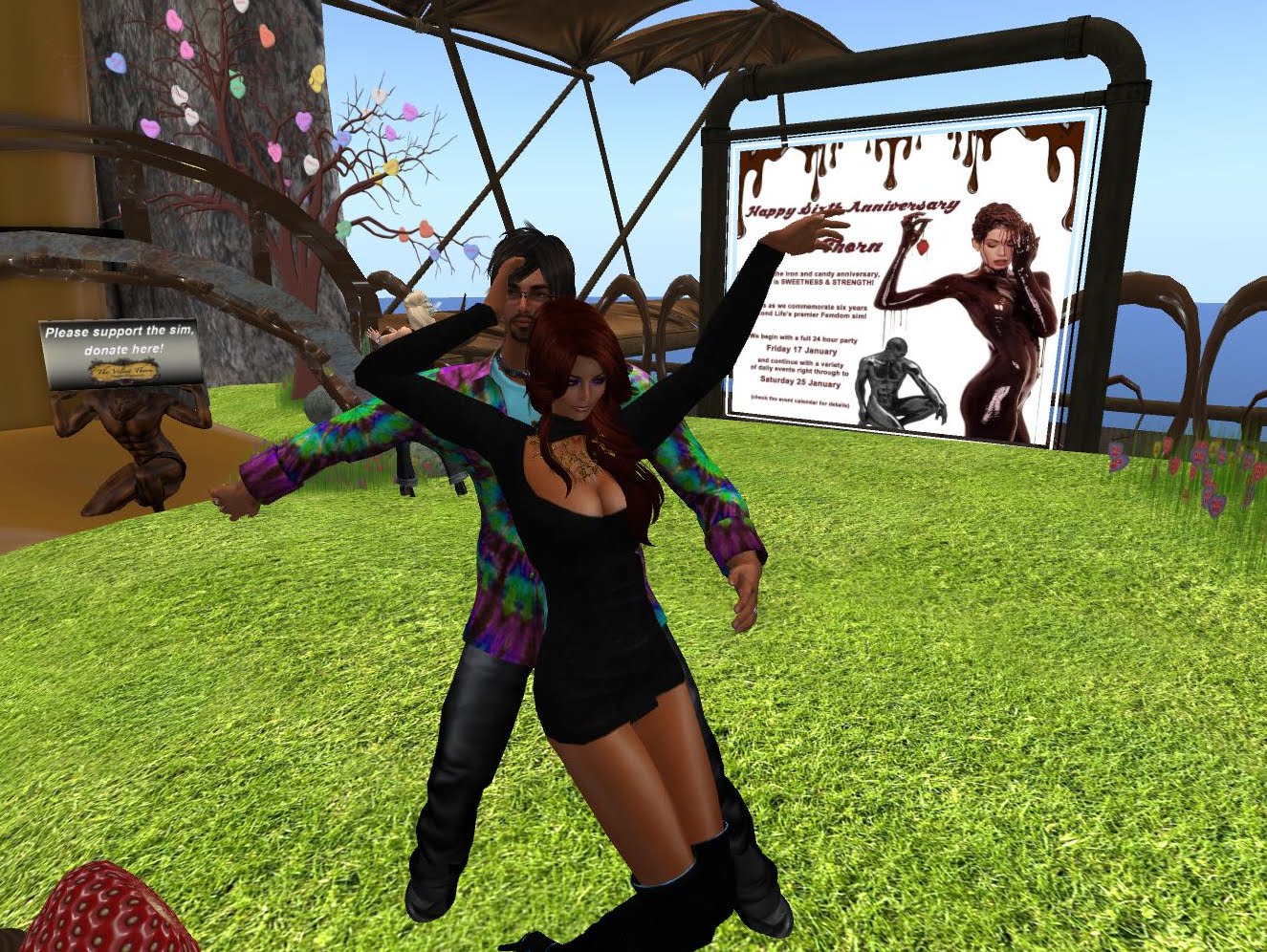 Well, today is the official 6th Anniversary of Velvet Thorn and our very own Goddess StarSong Bright’s SEVENTH rezzday! We need very little excuse to throw a party at VT, but today we had heaps of reasons to dance to Mani’s music… the two already mentioned, and Martin Luther King’s Birthday, and the 2nd Anniversary of Mani’s first DJ gig here at Velvet Thorn. And he played a blinder of a set, lots of lovely stomping tunes! So, Happy Rezzday again Star, and thank you for creating Velvet Thorn. Here are some pics from the party: